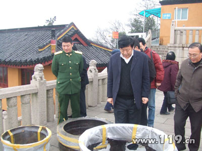 1月21日上午,在南通市公安局副局长王健的带领下,和消防、安检、治安、交巡等部门的相关人员组成检查组对狼山广教寺进行了实地消防安全检查,确保节日期间特别是除夕夜间狼山广教寺的消防安全。