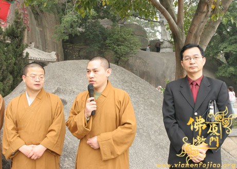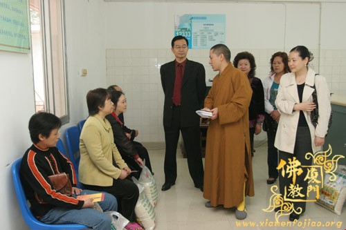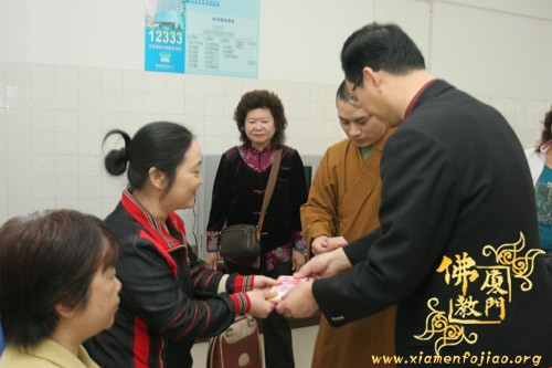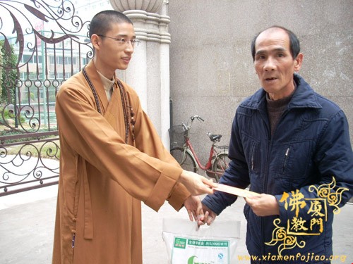 虎溪岩寺副寺向协法师开示了此次慈善活动的目的和意义,真心真意的帮助老弱病残、孤老孤儿,让他们过上祥和快乐的新年,把和谐带给厦门、带给社会。