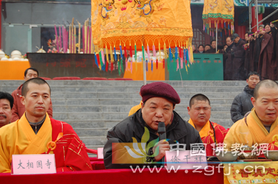 上午11点30分开光法会典礼正式开始,鸣放礼炮,唱三宝歌,中国佛教协会理事、湖北省佛教协会副会长、襄樊市佛教协会会长、大海寺荣誉方丈上圣下君大和尚,河南省佛教协会秘书长徐干祥同志,荥阳市民族宗教局局长张大仓同志荥阳市佛教协会常务副会长、洞林寺监院延若法师,道教协会、基督教协会等省市领导和诸山长老纷纷光临道场并做了重要讲话,纷纷指出现在荥阳市的佛教事业正处在繁荣发展的大好时期,大海寺为建设和谐、繁荣的荥阳作出了自己的贡献,要继续加强全市佛教徒的团结,高举爱国爱教的旗帜,为建设更加繁荣、和谐的荥阳共同努力。最后由居士代表陈金陵、郭永昌发言,延若法师致答谢辞。
