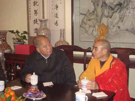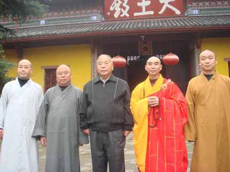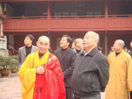 2007年12月29日上午,中央政治局原常委、中央书记处原书记尉建行一行在浙江省委副书记王华元、宁波市委副书记唐一军、鄞州区委书记寿永年等领导同志陪同下到浙江省宁波市天童禅寺参观。