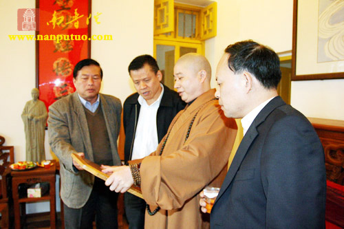 2008年1月23曰上午10时许,厦门市委常委詹沧州副市长在市民宗局陈建德书记、曾文瑛局长、苏人登处长等一行人的陪同下,来到南普陀寺进行新春慰问。南普陀寺方丈则悟大和尚在方丈楼热情接待了詹副市长一行。