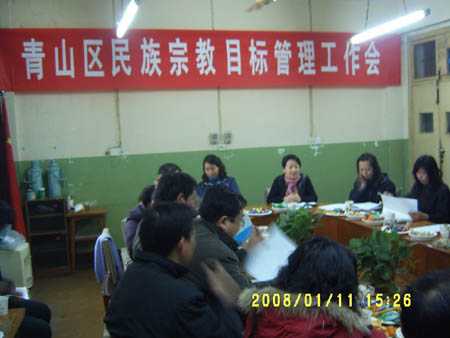 2008年1月11日,湖北省武汉市青山区民宗局举行区民族宗教目标管理工作座谈会,全区十条街道、两个管委会的分管领导和民宗干部参加了会议。