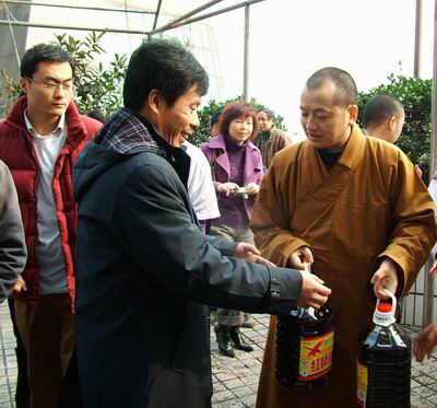 正式发放油米前,华岩寺方丈道坚法师首先发言。道坚法师表示,现在,虽然社会的生活水平普遍提高,但是,仍然有很多贫困家庭生活相当艰苦。华岩文教基金会原本就是致力于慈善、文化、教育等方面的组织,在这之前,他们已经通过各种方式,向贫困家庭捐赠了800桶食用油。