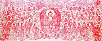 云居寺展出的62块经版是从2000多块中选取出来的,其中就包括这块《全佛图》。记者在展览现场看到,整块经版共有佛、菩萨、罗汉、飞天等共76个形象,佛画雕工细腻,线条飘逸、细如发丝,堪称艺术绝品。