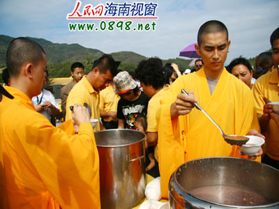 昨日是农历的腊月初八,三亚南山景区在南海观音广场举行礼佛祈福感恩会,并按照传统习俗,向游客和信众发送腊八福寿粥。