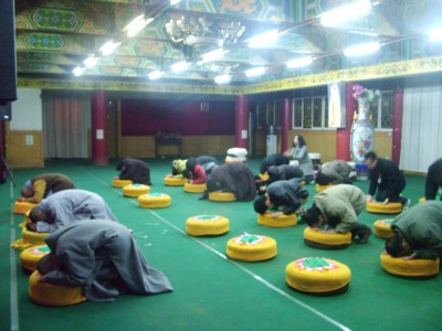 中国佛网讯 2008年2月6日晚7点,除夕之夜,重庆华岩寺2008春节禅修班在华岩寺念佛堂召开营员见面会,华岩寺知客普济法师主持了此次见面会,20多名营员随喜参加。