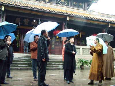 中国佛网讯 2008年2月26日上午,重庆市九龙坡区政府黄云区长在九龙坡区旅游局邹玉民局长、九龙坡区民宗局黄启海副局长等人陪同下,前往重庆华岩寺视察工作,受到华岩寺方丈道坚法师以及监院朗光法师的热情接待。