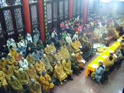中国佛网讯 2008年1月31日晚上六点,在重庆华岩寺方丈道坚法师的主持下,华岩寺全体僧众及服务居士在弘法楼般若讲堂内召开2007年度年终总结大会。