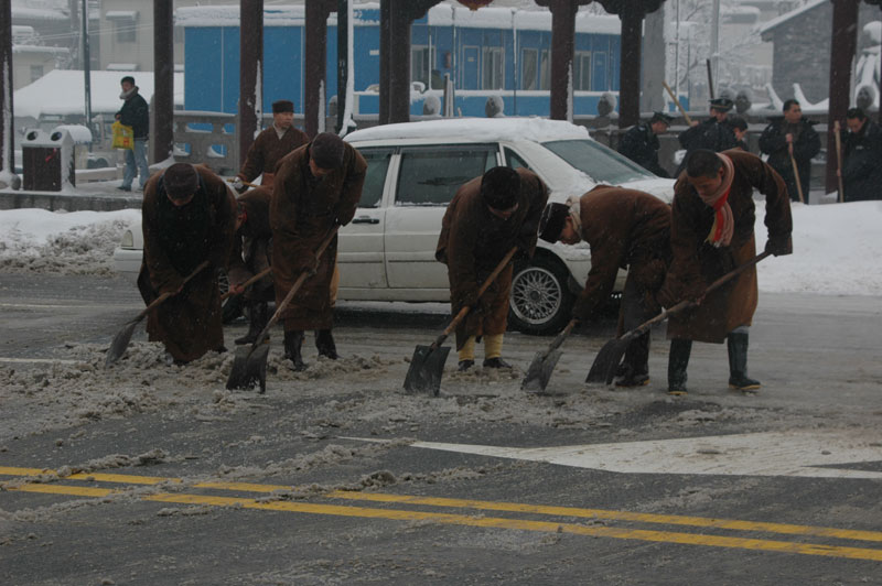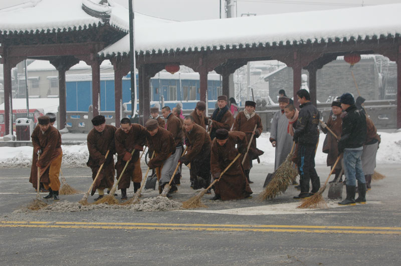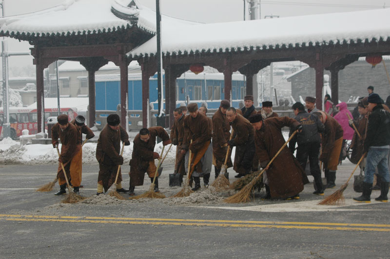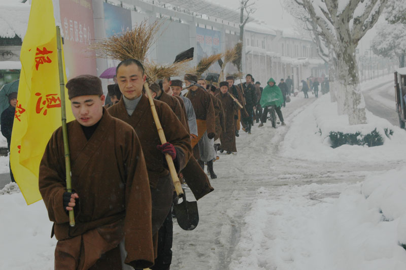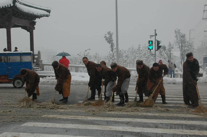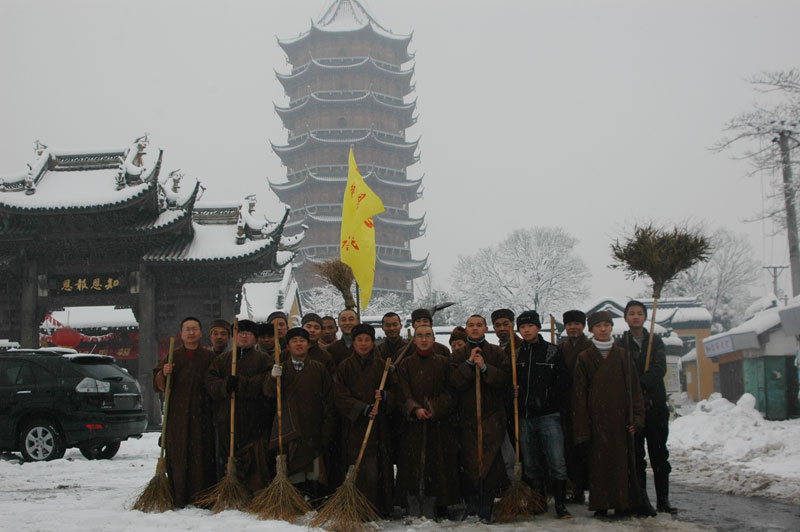 千里冰封,封不住法师们战天斗地的豪情壮志;万里雪飘,飘不走法师们夺取胜利的坚定信念。在这个寒冷的冬天里,在这五十年来最大一场风雪中,苏州报恩寺的法师们,正以青春的热力,温暖着2008的新年。