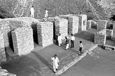 1980年,考古学者在这里挖掘出公元前2000年至3000年的陶器,有人推测此地可能就是南亚地区人们最早聚居的地方。如今,历史的风雨早已消磨了古城身上的光彩,但那多年繁华所酝酿出的神韵却仍然散发着光芒。步入方圆12公里的塔克西拉遗址区,只见一片半米多高的墙基错落有致地分布在一座小丘之侧,宽达10米的主干路、街巷中纵横的排水沟、城脚深深的水井仍然清晰可辨,恍惚中那些高大的城垣、精致的神庙仿佛再现在眼前。