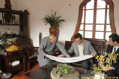 上午8点30分,进明寺住持普端法师热情接待了林副区长一行,并向区领导介绍了进明寺的历史及现在的发展情况,建设上均采用唐朝的建筑风格,营造出佛教古朴、庄严、清静、和谐的完美气氛。畅谈后普端法师带领区领导实地参观了大雄宝殿等,并撞响了和平钟。