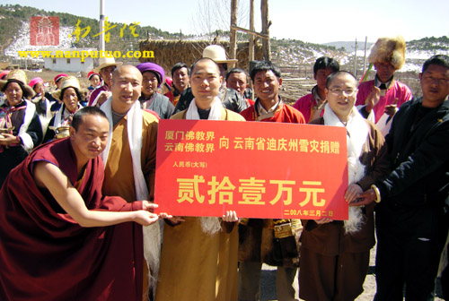 “厦门佛教界为灾区现场捐款200多万”云南救灾组已经送达灾区
