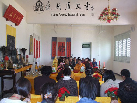 2008年3月26日(农历二月十九)上午,陕西省西安市长安区护国道安寺隆重举行祈福奥运、护国息灾观音菩萨圣诞法会,宽严法师主法,启建大悲法会。赞咏观音大士。齐诵大士神妙章句。共祈佛日增辉、正法久住、国运昌隆、海峡一统。法会在大悲怙主之慈光下吉祥圆满。四众弟子无不法喜充满,悲愿增长。