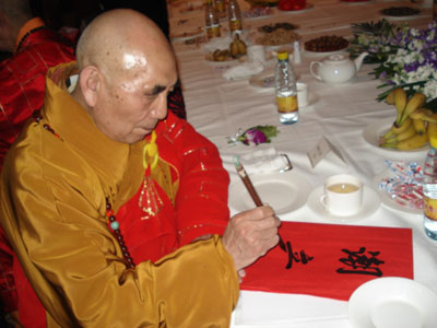 2008年3月2日,在辽宁省大连市香格里拉大饭店宴会上,山东省佛教协会会长、湛山寺方丈明哲长老应莲花山寺弘法部总干事虚实居士拜请为寺刊《潮音》题写刊名。