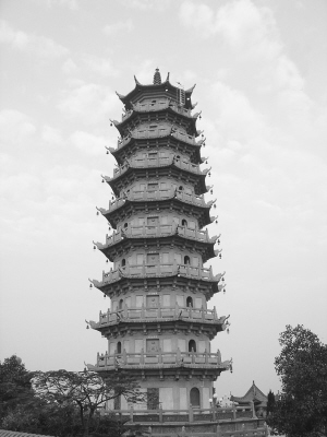 1月21日,经过一整天的舟车辗转,当晚近8时,我们抵达千佛塔寺。寺院坐落在梅州市东郊山上,还在市区时,远远就能看见灯光映衬下的千佛宝塔。随着车逐渐驶上山腰,我们亦似乎从尘俗走到了仙境,夜色中的古塔宝刹在稀疏灯光的掩映下更显清丽,那飘然入耳的悦耳风铃,犹如天籁,置身其中,仿登天界。
