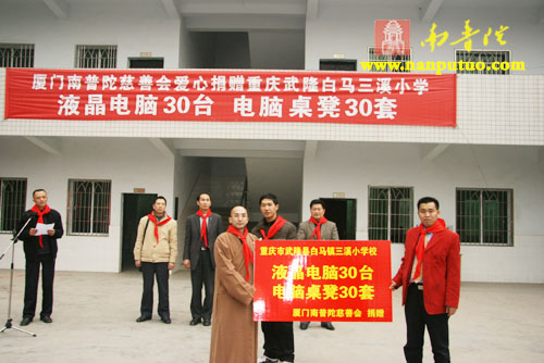 厦门南普陀寺慈善会向重庆武隆三溪希望小学捐赠30台液晶电脑和桌椅