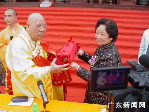 石景宜先生的夫人刘紫英女士将《贝叶经》赠送给粤南海西樵山宝峰寺。