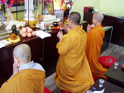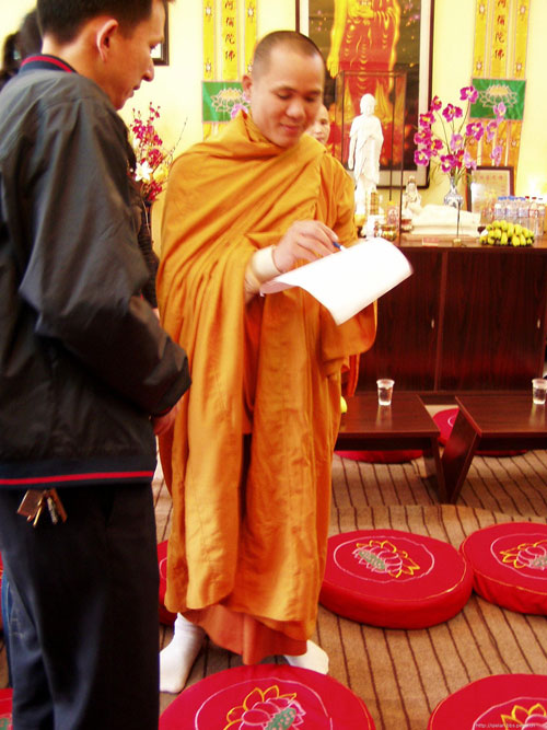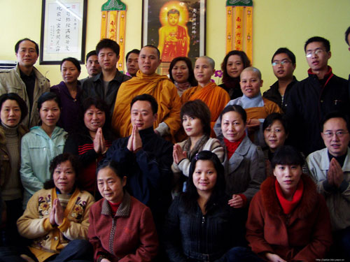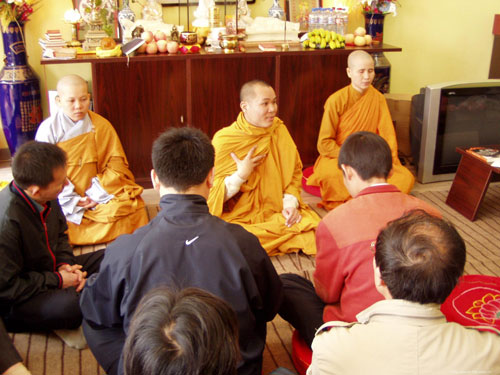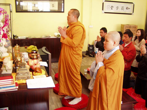 越南明莲法师昨日来到武汉伽兰学堂传授三皈并教授禅定方法