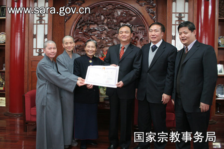 2008年3月11日,国家宗教局齐晓飞副局长代表国家宗教局向慈济慈善事业基金会林碧玉女士颁发了基金会法人登记证书并进行会谈。