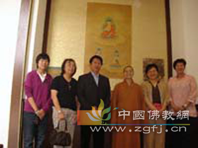中国著名佛教艺术家苏圣普先生、澳中文化协会顾问蔡群、秘书长马书媛等一行六人,在国际佛光会昆士兰协会副会长卢姝锦陪同下,3月16日莅临中天寺参访,拜会澳纽总住持依来法师。苏圣普先生首先介绍自己作画、学佛的心路历程以及学佛生活体验的心得分享,并且致赠南天寺「西方三圣」画像。