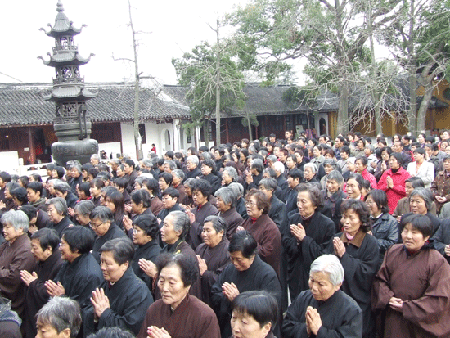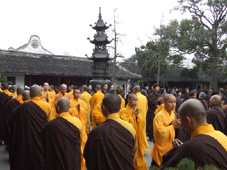 2008年3月18日晚,江苏省苏州市西园寺僧众云集大雄宝殿,举行祝圣法会。法会由西园寺堂主常性法师主法,苏州周边四百余信众随喜参加。