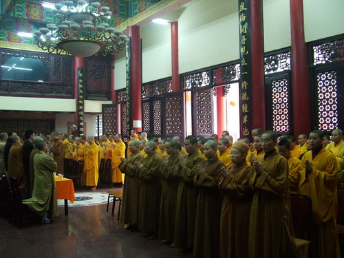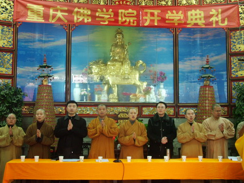 中国佛网讯 2008年3月3日上午九点半,重庆佛学院开学典礼在重庆华岩寺弘法楼般若讲堂内举行,开学典礼由重庆华岩寺监院朗光法师主持,重庆市民宗委调研员张勇、九龙坡区民宗局王启海副局长、重庆佛学院副院长道坚法师及佛学院教务长等人参加了典礼,并分别致辞,希望学僧们能以积极的心态去迎接新的学年,好好珍惜时间,在新的一年里取得好的成绩。