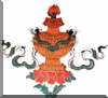 宝瓶 藏传佛教寺院中的瓶内装净水(甘露)和宝石,瓶中插有孔雀翎或如意树。即象征着吉祥、清净和财运,又象征着俱宝无漏、福智园满、永生不死。