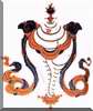 金鱼 鱼行水中,畅通无碍。佛教以其喻示超越世间、自由豁达得解脱的修行者。藏传佛教中,常以雌雄一对金鱼象征解脱的境地,又象征着复苏、永生、再生等意。