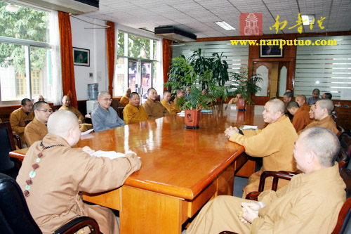 4月3日下午2时30分,南普陀寺每月一次常住执事工作交流汇报会议在闽院教务处召开。我寺方丈则悟大和尚、首座了法法师、后堂定恒法师、监院界象法师以及各堂口执事等参加了本次会议。会议由则悟大和尚主持。