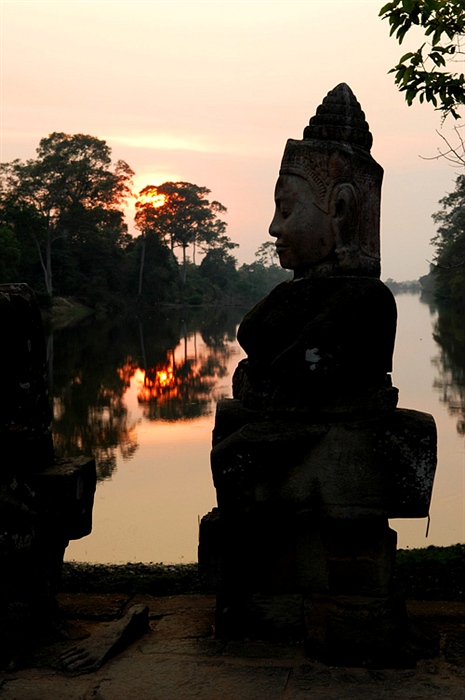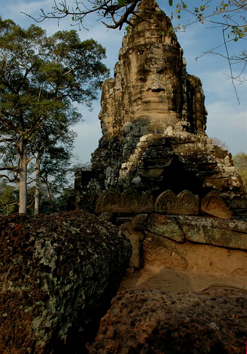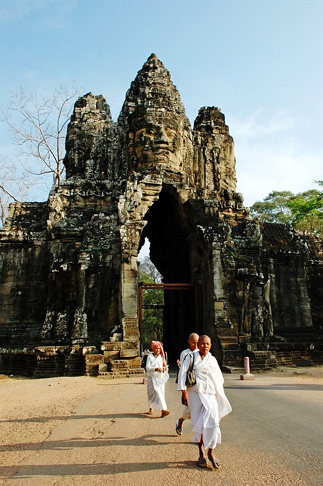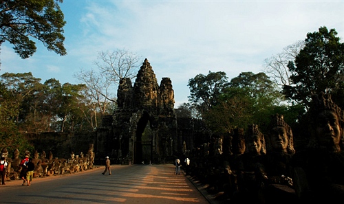 这是南门,也是百姓之门。吴哥城的各个门都规定什么人走什么门,有叫胜利门的,还有专门皇帝走的门,还有俘虏败将走的门。