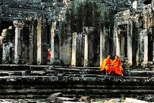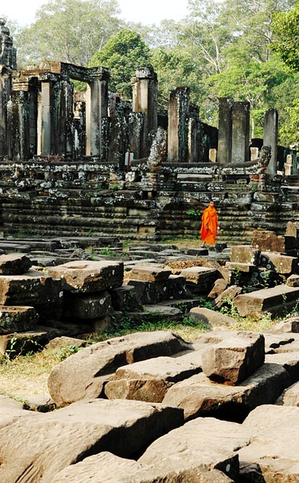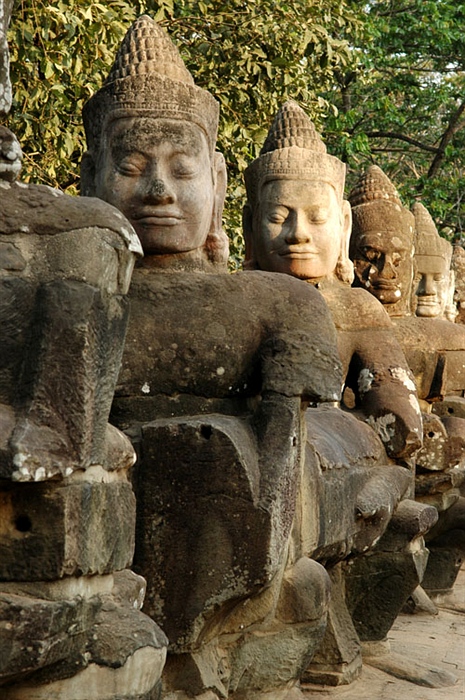 右面的都是神(上图),毁得差不多了。左面的都是魔鬼(下图),叫asura。两面的像都抱着巨大的蛇身,蛇头是七个。毁坏得看不出来了,所以我都没有看出前面的蛇头形状,也就没有去拍。