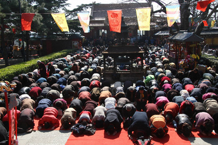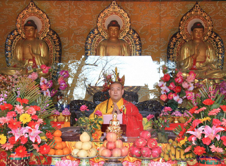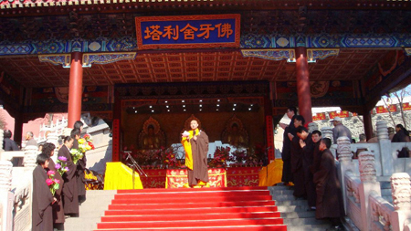 2008年3月30日上午九点半,北京灵光寺隆重举行传授三皈五戒法会。灵光寺方丈常藏法师主持法会,参加的信众近两千余人。