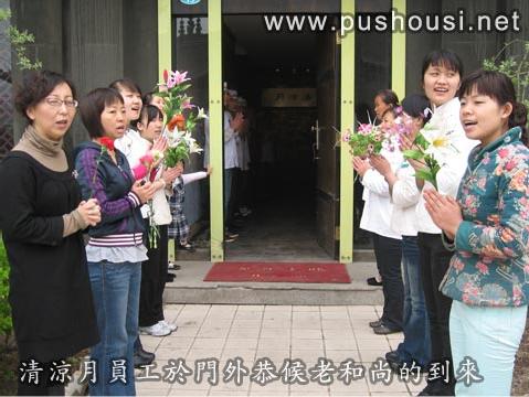 4月11号上午梦参老和尚应众居士之请於清凉月传授三归。清凉月全体员工恭敬而热忱地欢迎老和尚的到来。清凉月是位於太原鼓楼附近的一家素餐馆,由几位居士发心,提倡素食文化,力求通过品尝原味自然的蔬食达到身体的健康和心灵的快乐。老和尚为居士们作了适机的开示,对清凉月的素菜给予肯定,并鼓励居士们继续开拓创新。