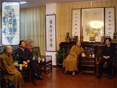2008年3月31日下午,浙江省委统战部娄阳生部长、省民宗委王毅主任一行到温州市太平岭太平寺进行视察,受到太平寺僧众的热情接待。