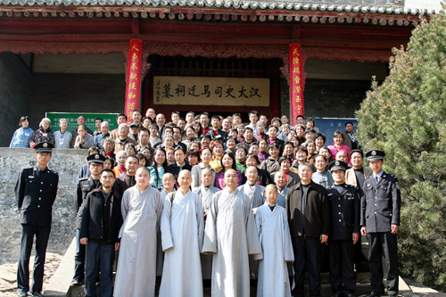 (考察团首先参观了史圣司马迁祠墓并全体合影)