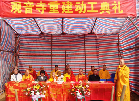2008年4月6日上午,陕西省西安市长安区观音寺隆重举行重建动工典礼。动工典礼由长安终南山佛教协会副会长兼秘书长宽池法师主持,长安终南山佛教协会会长宽旭法师致辞,长安区统战部副部长阎麦焕、长安区民宗局魏福幸、史权社与会。当日四众弟子三百多人参加了动工法会。