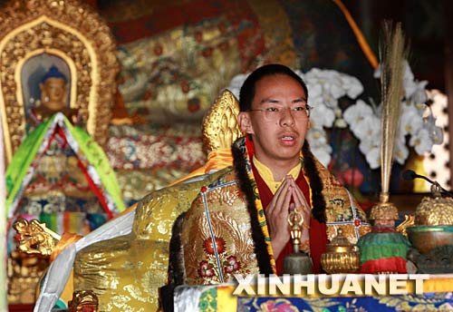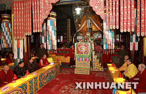 第十一世班禅额尔德尼·确吉杰布21日在北京雍和宫主持为在四川汶川大地震中遇难同胞的祈愿法会。
