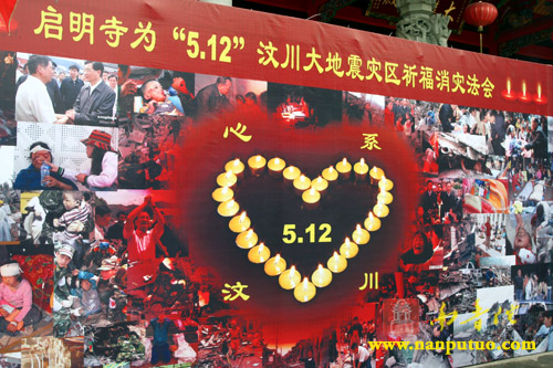 上午10时,消灾祈福法会在清尚法师的主持下正式开始,启明寺住持开敏法师带领全寺僧众及数百名信众为在地震中遇难同胞沉痛默哀三分钟。之后,法师表示:“这次汶川大地震,举国同悲,灾区的人民也牵动着广大佛子的心,在爱与责任的呼唤下,启明寺决定举行消灾祈福法会,并再次组织募捐活动,欢迎大家奉献爱心,与全国人民一道帮助灾区人民共渡难关,重建家园。”在唱赞、诵经、回向、祈愿之后,举行现场募捐,启明寺再捐10万元、启明寺净土莲友40000元、戒定法师20000元、开敏法师15000元、戒行法师12000元、戒端法师6000元、净兰法师4000元、开道法师3000元,广大信众也纷纷解囊,捐款数目千元百元不等,用自己的爱心支援灾区人民抗震救灾。