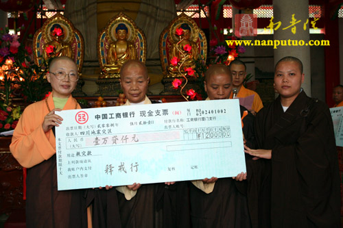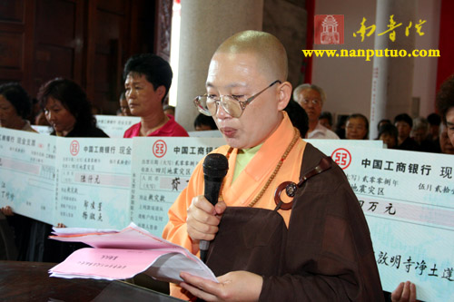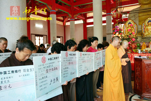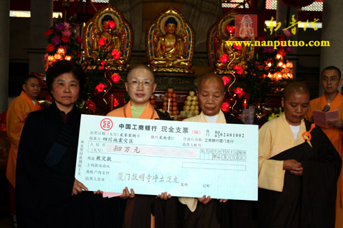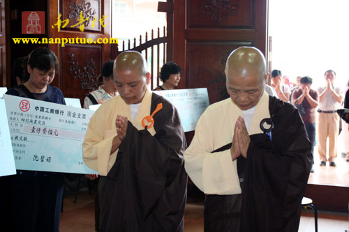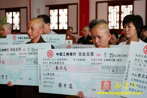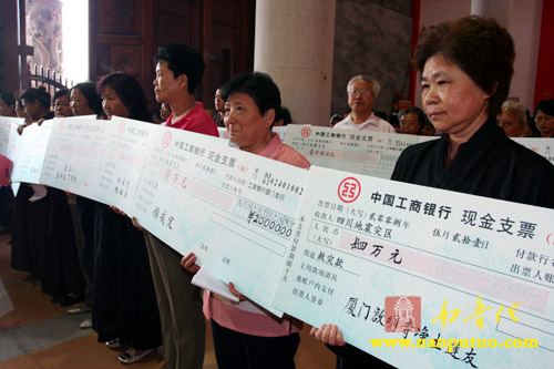 厦门启明寺为汶川大地震举行消灾祈福法会及募捐活动现场共募捐善款29.5617万元