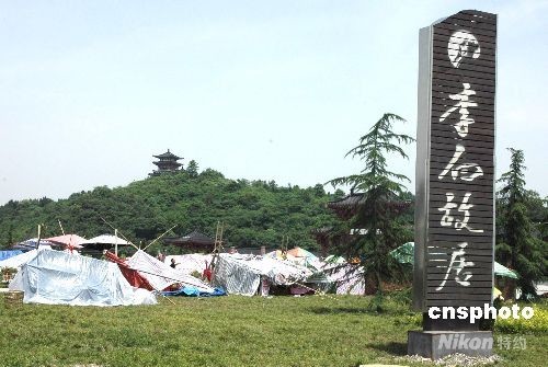 江油民众在唐代大诗人李白故居——江油青莲乡灾民在故居景区门口空地上搭起的帐篷,艰难度日。