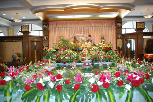 农历四月初八日,普寿寺在法堂举行浴佛法会。法师们和来自四面八方的几百位居士站满了法堂。如瑞法师领众发愿,并为大众开示浴佛的意义,其实就是借由浴佛毐除我们的贪嗔痴三毒烦恼。九十四岁的梦老作最后的偈语。法会庄严隆重。来参加法会的居士们都法喜充满。