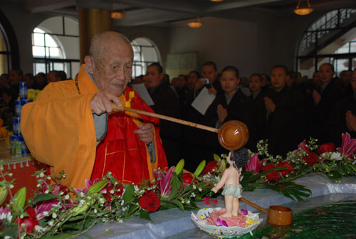 梦参老和尚浴佛