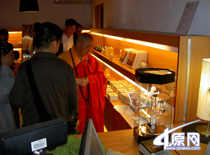 开幕典礼前,释永信方丈带着众人参观神秘的“欢喜地”,原来,“少林寺欢喜地”就是一个少林寺联系游客和信徒的地方,里面有佛家用品、礼品等商品明码标价等待游客挑选。几十个方形的蒲团,加上新型液晶电视机构成的体验馆,让来宾赞叹不已,现代素斋馆偌大的空间摆满了简单的桌凳,服务柜台里站立着身着僧式工装的服务员。据释永信介绍说,欢喜地是一个体味少林禅茶、静心修行、交流佛学的静秘之所。这里是少林寺欢喜地的总店,今后,还要在世界各地开设分店,进一步扩大少林寺服务大众的平台。欢喜地成立的目的是为了运用现代技术和现代传播方法,推广传统中国文化。