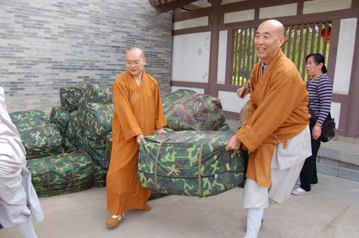 贤空法师鼓励志愿者以大无畏的精神帮助灾区