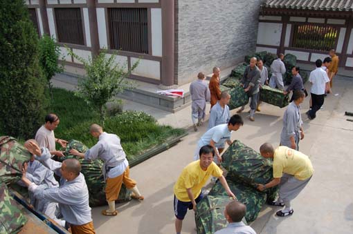 同舟共济,悲心拔苦。自发组织的12名志愿者一同前往灾区,参加灾区救援工作,果清法师为队长,队员有宽阳、缘义、昌继、仁德、净远、长德、昌慧、道亮、陈考志、杜全、张智。