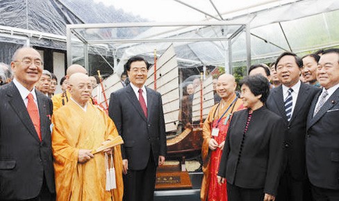 随后,胡锦涛还参观了日本佛教律宗的总寺庙唐招提寺。唐招提寺由中国唐代高僧鉴真和尚于天平宝字3年(公元759年)创建,大约于公元770年竣工。寺内建筑、佛像都是天平文化的精华。寺内东北角有鉴真和尚的陵墓。这座具有中国盛唐建筑风格的建筑物被确定为日本国宝,已被列入世界文化遗产。