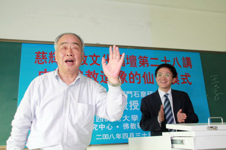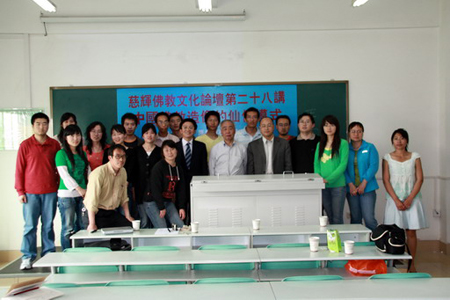 2008年4月30日,“慈辉佛教文化论坛”第二十八讲,在陕西师范大学长安校区文渊楼成功举办。邀请著名考古学家、原龙门石窟研究所所长温玉成教授讲授《中国佛教造像的仙佛模式》。吴言生教授主持讲座。吕建福教授及陕西师范大学宗教学、文学、艺术学院的同学们聆听了讲座。