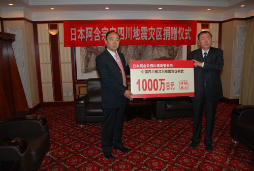 昨天,阿含宗会长桐山靖雄通过中国国际友好联络会以个人名义向中国四川地震灾区捐款1000万日元,用于修建希望小学。