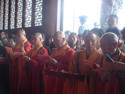 上午9时,在喜庆的锣鼓声中法会拉开帷幕。明学长老、道生长老、诚信大和尚、刑一法师等共同为碧岩禅寺上中下佛像落成开光洒净、上供主法。法会按计划如法如律依依的顺利进行,最后在嘹亮的梵音声中圆满结束。参加此次盛典的人近千人。