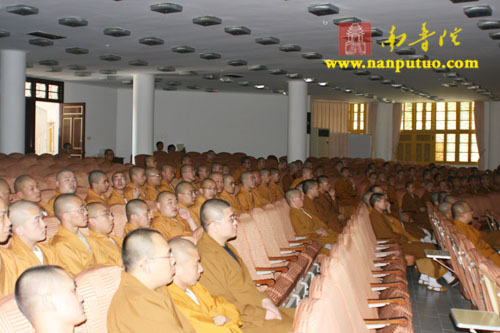 5月12日下午两点,闽南佛学院男众部在教务长传明法师和教导长达源法师以及各班班主任的组织和带领下,在南普陀寺讲堂观看了“祥云绕海西”——奥运圣火在厦门站传递的实况转播。